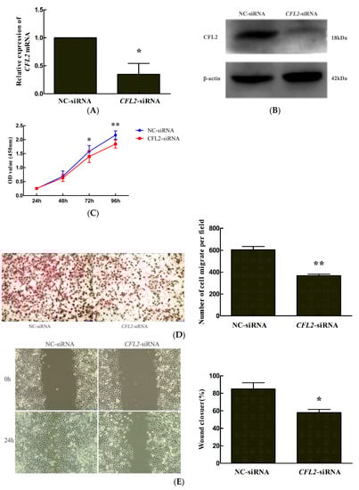 2.6. CFL2 siRNA Inhibits the Proliferation and Migration of MGC803 Cells