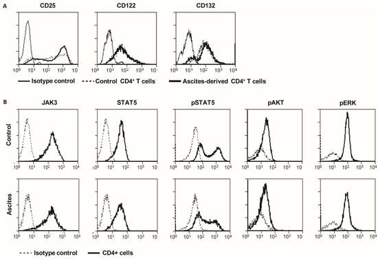 2.3. Ascites-Derived CD4+CD25- T Cells Have a Normal Expression of IL-2R and Its Downstream Signaling Components