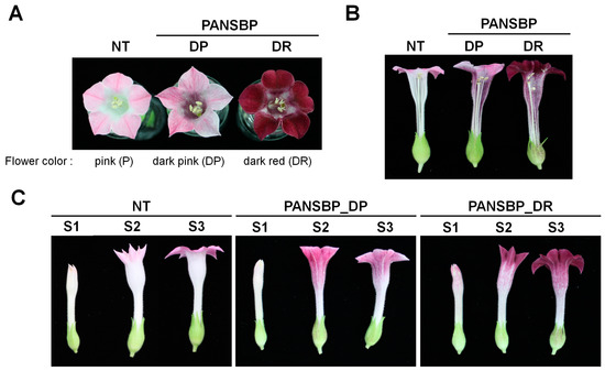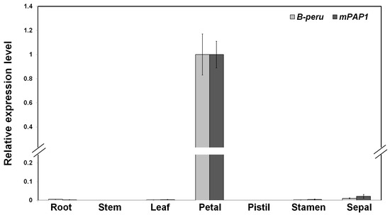 Kim, D.-H.; Park, S.; Lee, J.-Y.; Ha, S.-H.; Lim, S.-H. Enhancing Flower Color through Simultaneous Expression of the B-peru and mPAP1 Transcription Factors under Control of a Flower-Specific Promoter. Int. J. Mol. Sci. 2018, 19, 309. https://doi.org/10.3390/ijms19010309
