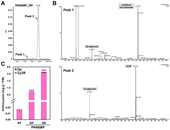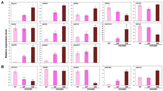 2.3. Gene Expression of B-peru and mPAP1 under Control of the Tobacco ANS Promoter Was Restricted in Floral Organs