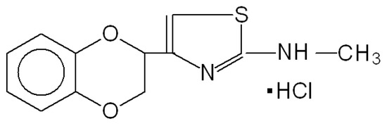This compound, 2-(2-methyl-amino-thiozolyl)-1,4-benzodioxane hydrochloride, named mesedin (Figure 1), was selected for further studies because of its pronounced properties for selectively and stably blocking the peripheral α2 adrenoreceptors, and its lower toxicity compared to the known structural analogs, beditin and idazoxan. Comparative acute toxicity study carried out on 106 mice revealed 50% and 14 times less toxicity for mesedin, than beditin and idazoxan, respectively [16].