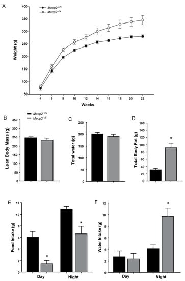 - Fyffe, S.L.; Neul, J.L.; Samaco, R.C.; Chao, H.T.; Ben-Shachar, S.; Moretti, P.; McGill, B.E.; Goulding, E.H.; Sullivan, E.; Tecott, L.H.; et al. Deletion of Mecp2 in Sim1-expressing neurons reveals a critical role for MeCP2 in feeding behavior, aggression, and the response to stress. Neuron 2008, 59, 947–958. [Google Scholar] [CrossRef] [PubMed]