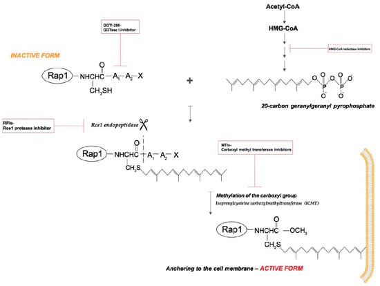 - Wilson, J.M.; Prokop, J.W.; Lorimer, E.; Ntantie, E.; Williams, C.L. Differences in the phosphorylation-dependent regulation of prenylation of Rap1A and Rap1B. J. Mol. Biol. 2016, 428, 4929–4945. [Google Scholar] [CrossRef] [PubMed]