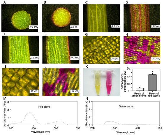 Total anthocyanin content of green and red stems was measured by a pH differential protocol [35]. Detailed information is provided in the Supplementary Information.