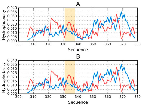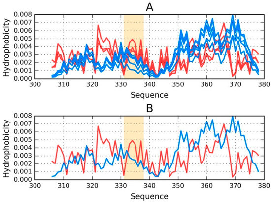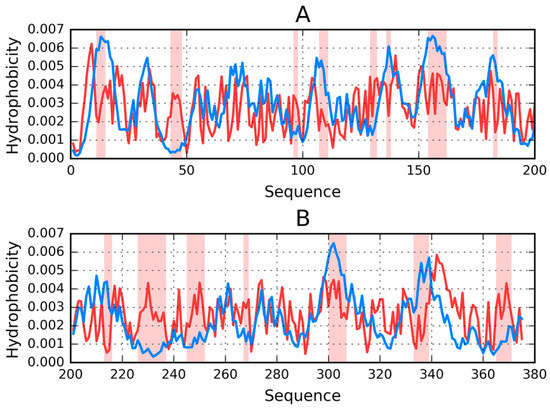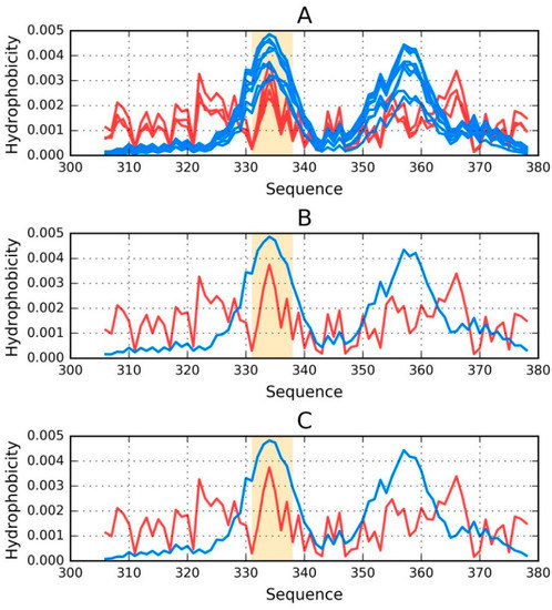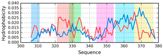 15], the presence of alternating bands of high and low hydrophobicity can be regarded as one of the principal indicators of amyloid transformation.