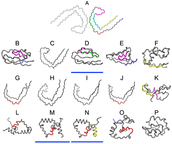 As previously noted, we have carried out an in silico experiment that consisted of predicting the conformation of a tau protein whose sequence matches the discussed amyloids. Our analysis concerned the entire molecule as well as fragments that are highlighted in