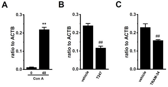 2.3. Decreased Expression Levels of KCa3.1 by the Inhibition of HDAC2 and HDAC3 in Con A-Stimulated Mouse Thymocytes
