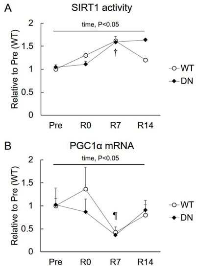 2.4. Sirtuin 1 (SIRT1) Activity and Peroxisome Proliferator-Activated Receptor Gamma Coactivator 1-α (PGC1α) mRNA Levels