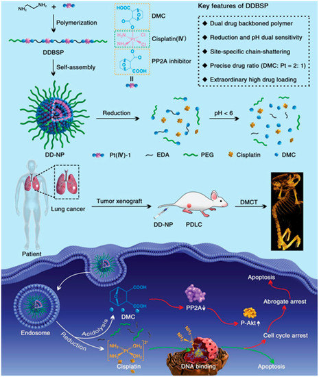 - Cong, Y.; Xiao, H.; Xiong, H.; Wang, Z.; Ding, J.; Li, C.; Chen, X.; Liang, X.J.; Zhou, D.; Huang, Y. Dual drug backboned shattering polymeric theranostic nanomedicine for synergistic eradication of patient-derived lung cancer. Adv. Mater. 2018, 30, 1706220. [Google Scholar] [CrossRef] [PubMed]