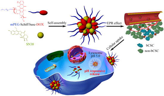 - Sun, N.; Zhao, C.; Cheng, R.; Liu, Z.; Li, X.; Lu, A.; Tian, Z.; Yang, Z. Cargo-free nanomedicine with ph-sensitivity for co-delivery of dox conjugated prodrug with sn38 to synergistically eradicate breast cancer stem cells. Mol. Pharm. 2018, 15, 3343–3355. [Google Scholar] [CrossRef] [PubMed]