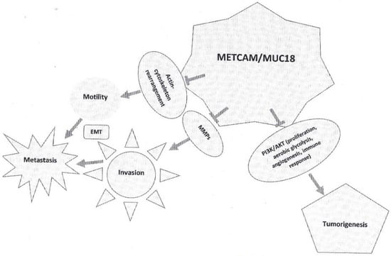 43] upstream and downstream of METCAM/MUC18 involved in the process and (d) the transcriptional control in the processes [