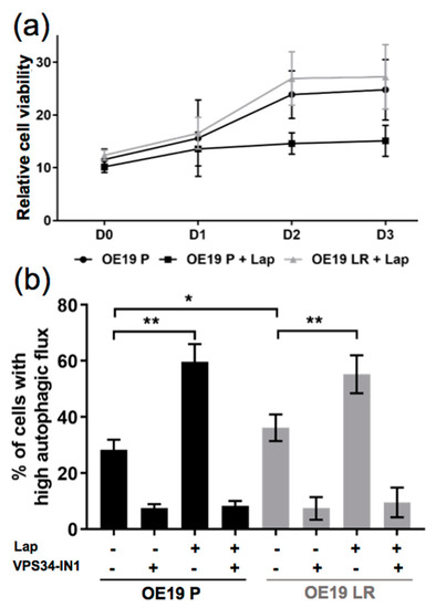 2.2. Induction of Autophagic Flux in OE19 Cells upon Lapatinib Treatment