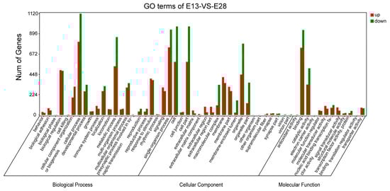 2.3. Differential Gene Expression at Embryonic Day 13, 18, and 28 (E13, E18, and E28)