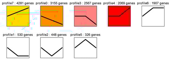 2.6. Cluster Analysis of DEGs among the Three Developmental Stages