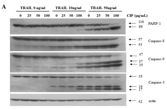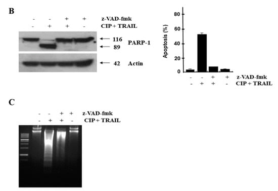 2.2. CIP Sensitized TRAIL-Induced Apoptosis through Caspase Pathway
