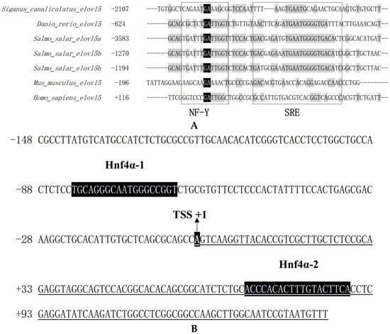 2.2. Two Hnf4α Binding Sites Were Predicted in Rabbitfish Elovl5 Promoter