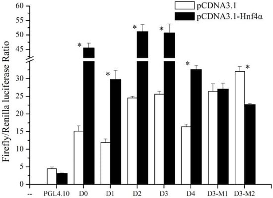 4.5. Functional Identification of the Two-Candidate Hnf4α Elements