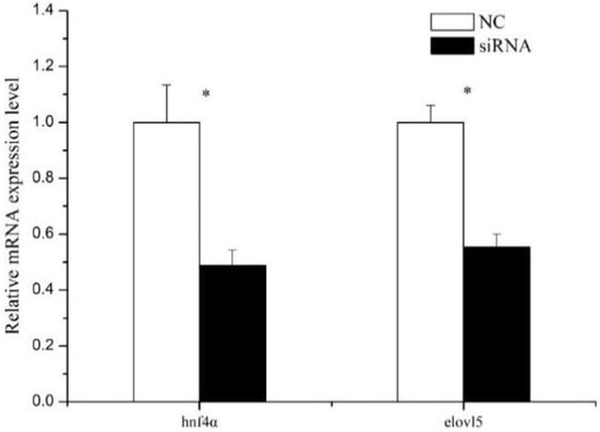 Chicago/Turabian StyleLi, Yuanyou, Xiaowei Zeng, Yewei Dong, Cuiying Chen, Cuihong You, Guoxia Tang, Junliang Chen, and Shuqi Wang. 2018. "Hnf4α Is Involved in LC-PUFA Biosynthesis by Up-Regulating Gene Transcription of Elongase in Marine Teleost Siganus canaliculatus" International Journal of Molecular Sciences 19, no. 10: 3193. https://doi.org/10.3390/ijms19103193