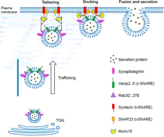 - Hansen, N.J.; Antonin, W.; Edwardson, J.M. Identification of SNAREs involved in regulated exocytosis in the pancreatic acinar cell. J. Biol. Chem. 1999, 274, 22871–22876. [Google Scholar] [CrossRef] [PubMed]