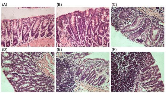 The tissues embedded in paraffin were sectioned into 0.45 μm slices that were placed on glass slides (colon, lung, stomach, spleen, kidney, and liver). The slides were deparaffinized and stained with hematoxylin and eosin. The slides were dehydrated in alcohol, cleared in exylene, and covered for imaging under a light microscope. The assessments were assigned for the destruction of the crypt structure, the depth of the lesions, and the degree of inflammatory cell infiltration.