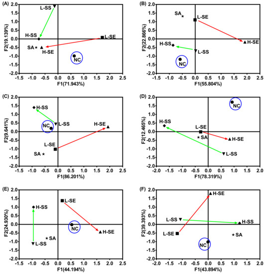 2.7. The Different Actions from the SE, SS, and SA Indicated by Principle Component Analysis (PCA)