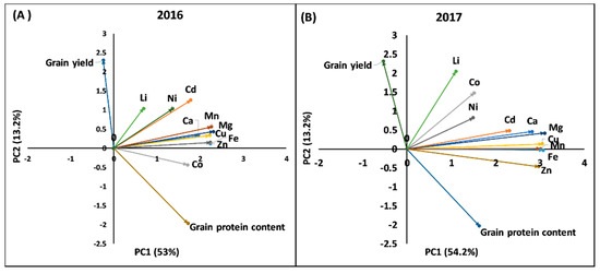 | Trait | Ca | Cd | Co | Cu | Fe | Li | Mg | Mn | Ni | Zn | GPC | GY | GYpTKW |