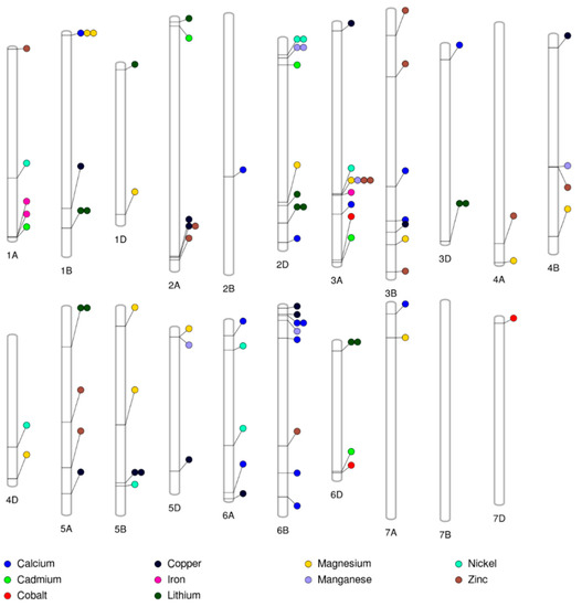 - Shi, R.; Tong, Y.; Jing, R.; Zhang, F.; Zou, C. Characterization of quantitative trait loci for grain minerals in hexaploid wheat (Triticum aestivum L.). J. Integr. Agric. 2013, 12, 1512–1521. [Google Scholar] [CrossRef]