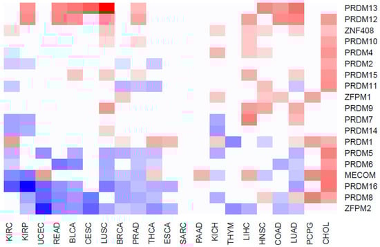 2.2. Differentially Expressed PRDM Genes across Human Cancers