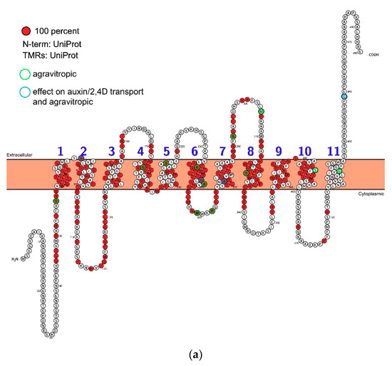 - Terasaka, K.; Blakeslee, J.J.; Titapiwatanakun, B.; Peer, W.A.; Bandyopadhyay, A.; Makam, S.N.; Lee, O.R.; Richards, E.L.; Murphy, A.S.; Sato, F.; et al. PGP4, an ATP binding cassette P-glycoprotein, catalyzes auxin transport in Arabidopsis thaliana roots. Plant Cell 2005, 17, 2922–2939. [Google Scholar] [CrossRef] [PubMed]