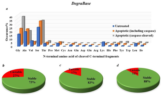 - Crawford, E.D.; Seaman, J.E.; Agard, N.; Hsu, G.W.; Julien, O.; Mahrus, S.; Nguyen, H.; Shimbo, K.; Yoshihara, H.A.; Zhuang, M. The degrabase: A database of proteolysis in healthy and apoptotic human cells. Mol. Cell. Proteom. 2013, 12, 813–824. [Google Scholar] [CrossRef] [PubMed]