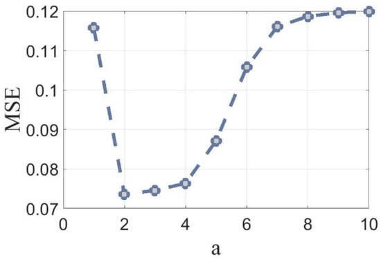 Mean square error (MSE) of binarization and ground truth segmentation for different a value.