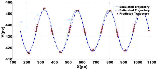 The estimation was obtained with Kalman filter configured with the statistical parameters described above. In Figure 8 it can be seen the trajectory estimation using the whole scheme predictor--corrector. As some cells disappear during some frames, statistical measurements for Kalman correction are not available along the entire image sequence. Thus, several missed points were used as a focused test of the Kalman prediction, that is, with no evaluation of correction equations.