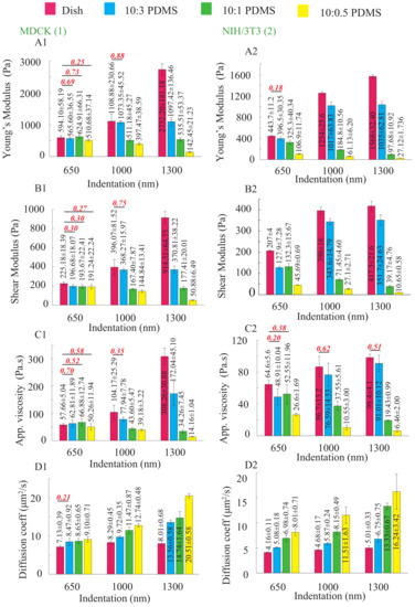 - Dimitriadis, E.K.; Horkay, F.; Maresca, J.; Kachar, B.; Chadwick, R.S. Determination of elastic moduli of thin layers of soft material using the atomic force microscope. Biophys. J. 2002, 82, 2798–2810. [Google Scholar] [CrossRef]