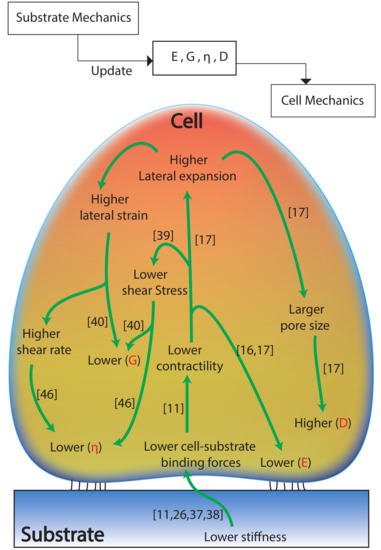 - Gupta, M.; Sarangi, B.R.; Deschamps, J.; Nematbakhsh, Y.; Callan-Jones, A.; Margadant, F.; Mège, R.M.; Lim, C.T.; Voituriez, R.; Ladoux, B. Adaptive rheology and ordering of cell cytoskeleton govern matrix rigidity sensing. Nat. Commun. 2015, 6, 7525. [Google Scholar] [CrossRef] [PubMed]