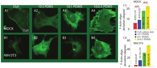 - Pelham, R.J.; Wang, Y.l. Cell locomotion and focal adhesions are regulated by substrate flexibility. Proc. Natl. Acad. Sci. USA 1997, 94, 13661–13665. [Google Scholar] [CrossRef] [PubMed]