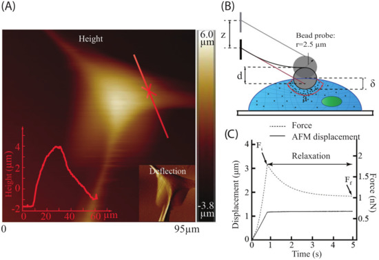 - Darling, E.M.; Zauscher, S.; Block, J.A.; Guilak, F. A thin-layer model for viscoelastic, stress-relaxation testing of cells using atomic force microscopy: Do cell properties reflect metastatic potential? Biophys. J. 2007, 92, 1784–1791. [Google Scholar] [CrossRef] [PubMed]