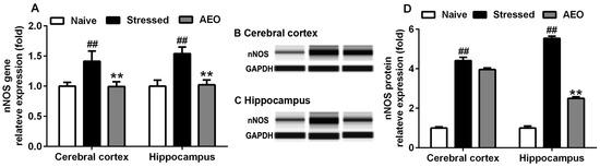 2.7. Effects of AEO on nNOS Gene Transcription and Protein Expression in Mice Brain