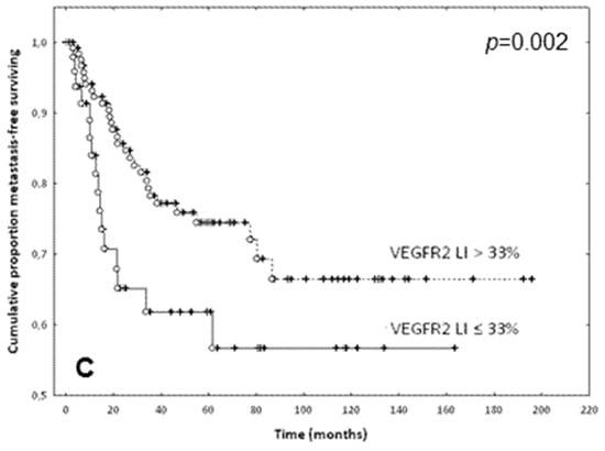 - The second group included cases with a VEGFR-1 LI > 5% and/or a VEGFR-2 LI ≤ 33% (n = 103).