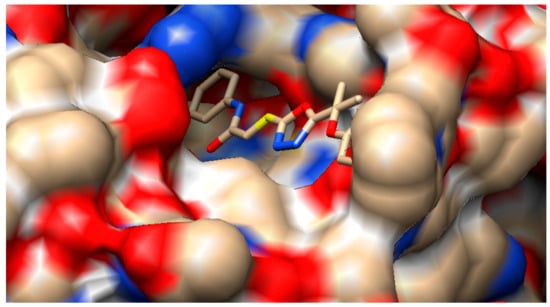 The molecular electrostatic potential surfaces of the oxadiazoles derivatives. Color code of atoms: C—grey, Cl—light green, H—light grey, N—blue, O—red, S—yellow.