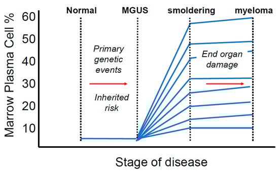 Chicago/Turabian StyleTomasson, Michael H., Mahmoud Ali, Vanessa De Oliveira, Qian Xiao, Yogesh Jethava, Fenghuang Zhan, Adam M. Fitzsimmons, and Melissa L. Bates. 2018. "Prevention Is the Best Treatment: The Case for Understanding the Transition from Monoclonal Gammopathy of Undetermined Significance to Myeloma" International Journal of Molecular Sciences 19, no. 11: 3621. https://doi.org/10.3390/ijms19113621