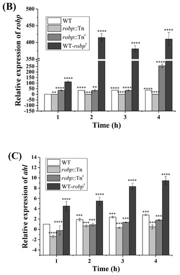 2.5. Expanding the Proposed Schema via Identification of robp Essentiality for QS-Dependent Phenomenon