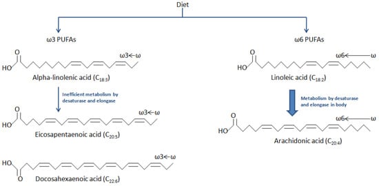 - Saini, R.K.; Keum, Y.S. Omega-3 and omega-6 polyunsaturated fatty acids: Dietary sources, metabolism, and significance—A review. Life Sci. 2018, 203, 255–267. [Google Scholar] [CrossRef] [PubMed]