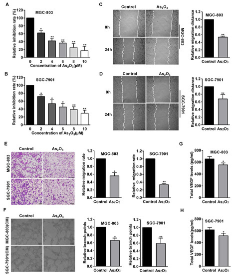 APA StyleZhang, L., Liu, L., Zhan, S., Chen, L., Wang, Y., Zhang, Y., Du, J., Wu, Y., & Gu, L. (2018). Arsenic Trioxide Suppressed Migration and Angiogenesis by Targeting FOXO3a in Gastric Cancer Cells. International Journal of Molecular Sciences, 19(12), 3739. https://doi.org/10.3390/ijms19123739