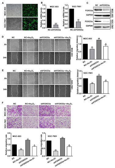 Chicago/Turabian StyleZhang, Lin, Lei Liu, Shining Zhan, Lili Chen, Yueyuan Wang, Yujie Zhang, Jun Du, Yongping Wu, and Luo Gu. 2018. "Arsenic Trioxide Suppressed Migration and Angiogenesis by Targeting FOXO3a in Gastric Cancer Cells" International Journal of Molecular Sciences 19, no. 12: 3739. https://doi.org/10.3390/ijms19123739