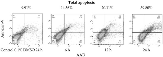 | Treatment [h] | Live Cells | Early Apoptotic Cells | Late Apoptotic Cells | Necrosis Cells | Total Apoptosis |