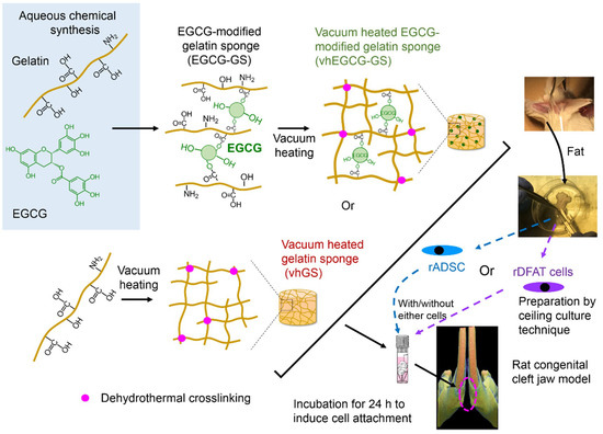 - Honda, Y.; Takeda, Y.; Li, P.; Huang, A.; Sasayama, S.; Hara, E.; Uemura, N.; Ueda, M.; Hashimoto, M.; Arita, K.; et al. Epigallocatechin gallate-modified gelatin sponges treated by vacuum heating as a novel scaffold for bone tissue engineering. Molecules. 2018, 23, 876. [Google Scholar] [CrossRef] [PubMed]