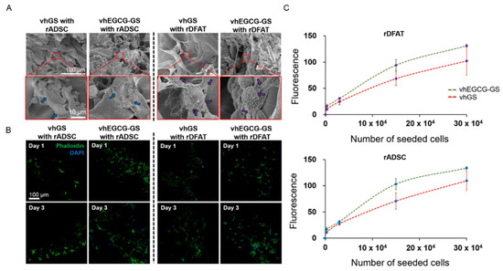 | No Implant | vhGS | vhGS with rADSC | vhGS with rDFAT Cells | vhEGCG-GS | vhEGCG-GS with rADSC | vhEGCG-GS with rDFAT Cells | |