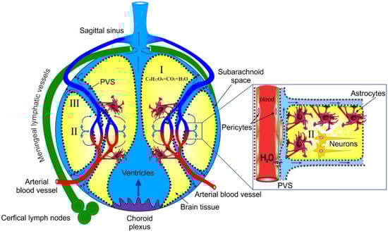 - Iliff, J.F.; Wang, M.; Liao, Y.; Nedergaard, M.A. Paravascular pathway facilitates CSF flow through the brain parenchyma and the clearance of interstitial solutes, including amyloid β. Sci Transl. Med. 2012, 4, 147ra111. [Google Scholar] [CrossRef] [PubMed]