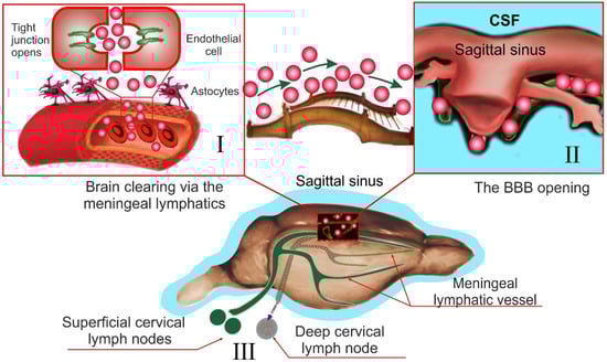 - Semyachkina-Glushkovskaya, O.; Navolokin, N.; Borisova, E.; Shirokov, S.; Abdurashitov, A.; Dubrovskiy, A.; Klimova., M.; Bodrova, A.; Nowave, E.; Khorovodov, A.; et al. Recruitment of the meningeal lymphatics by the blood-brain barrier. Front. Physiol. 2018. under review. [Google Scholar]