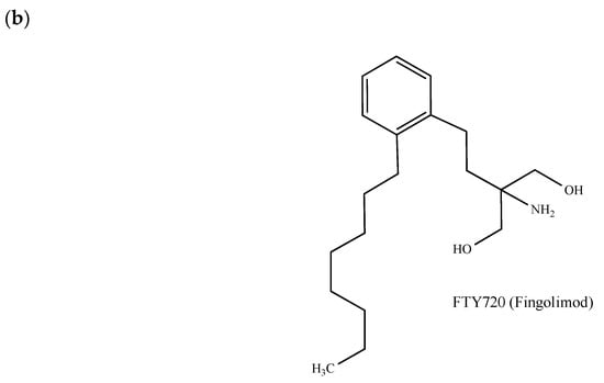 - Nagaoka, Y.; Otsuki, K.; Fujita, T.; Uesato, S. Effects of phosphorylation of immunomodulatory agent FTY720 (fingolimod) on antiproliferative activity against breast and colon cancer cells. Biol. Pharm. Bull. 2008, 31, 1177–1181. [Google Scholar] [CrossRef]